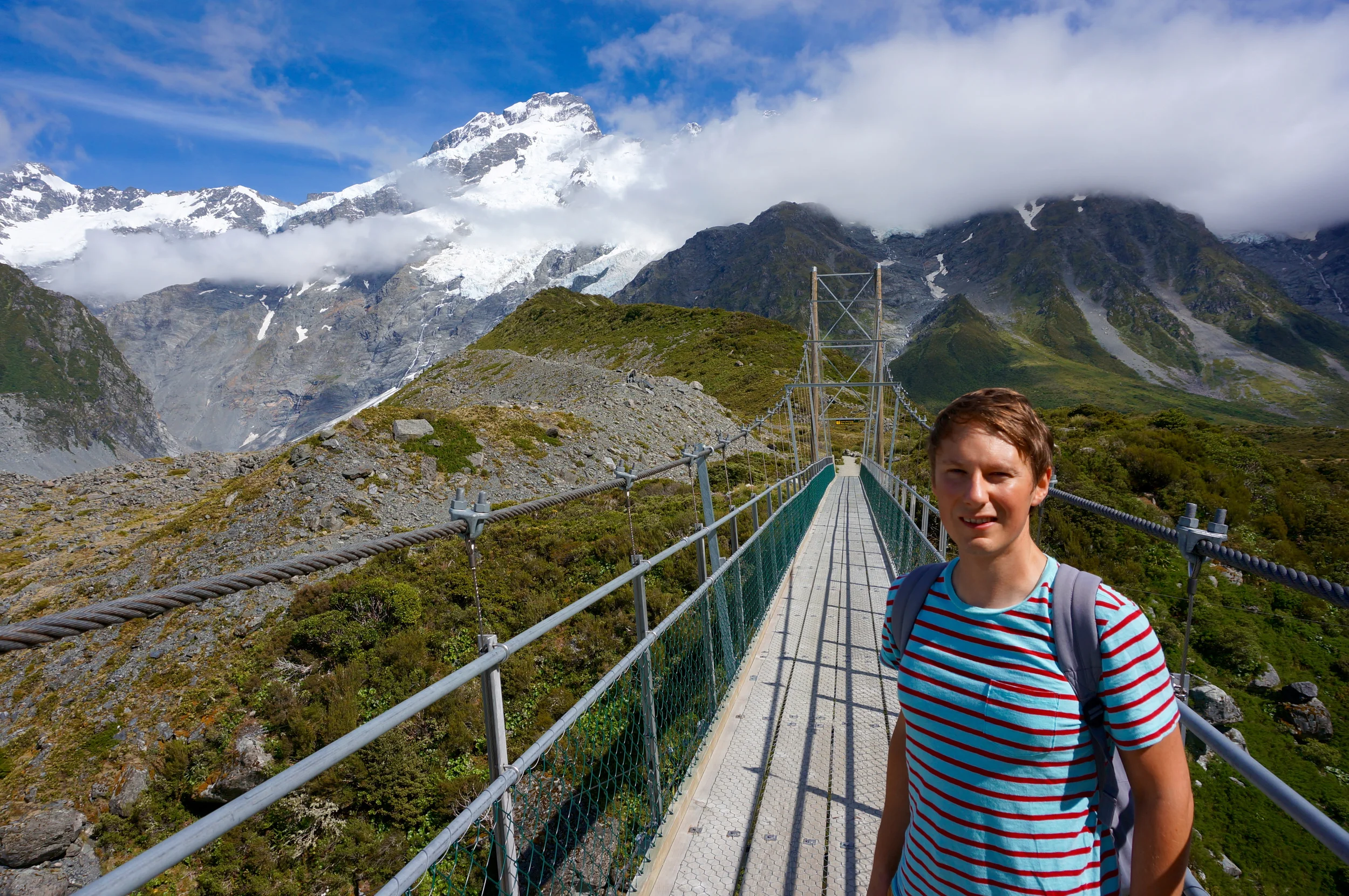 After a two hour hike we reached the end of the track: the rapidly retreating Hooker Valley glacier. We sat on the lake side and ate our hastily prepared ham sandwiches as the clouds cleared to reveal a pristine view of Mount Cook.